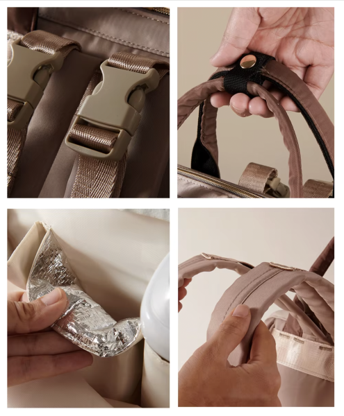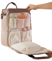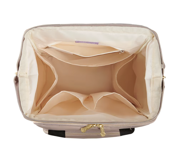 Batoh disponuje hlavním úložným prostorem, kde dáte většinu velkých věcí, jako je oblečení, deka, plíny, hračky, ale navíc je rozšířený o druhý úložný prostor, kde najdete celkem 7 samostatných kapes, které jsou perfektní pro plenky, lžičky, kapesníky apod. Tento prostor se dá po celém obvodu otevřít zipem, díky čemuž vám zajistí rychlý a snadný přístup ke všem věcem.Přední kapsa na zip je určena pro lahvičky a obsahuje hliníkovou fólii, která udrží tekutiny v teple. Kapsy jsou vhodné na většinu značek lahviček.