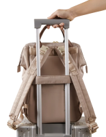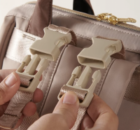 Velkou výhodou jsou integrované přezky pro zavěšení na kočárek, proto již není nutné kupovat háčky zvlášť. Pokud budete cestovat, super pomocníkem je všitý popruh na zádech, kterým batoh snadno uchytíte za rukojeť kufru.